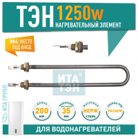 ТЭН выполнен из нержавеющей стали, предназначен для использования в дачных умывальниках и рукомойниках. Обеспечивает быстрый и равномерный нагрев воды благодаря мощности 1250 Вт. Длина ТЭНа – 200 мм. Резьба штуцера M10 обеспечивает надёжную фиксацию нагревательного элемента. Работает от напряжения 220 В.